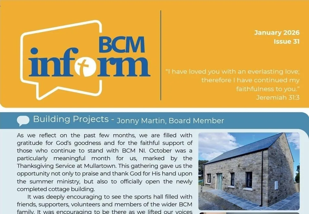 BCM NI is a faith mission and relies on the generosity of interested individuals and businesses to support the ongoing work in Northern Ireland.